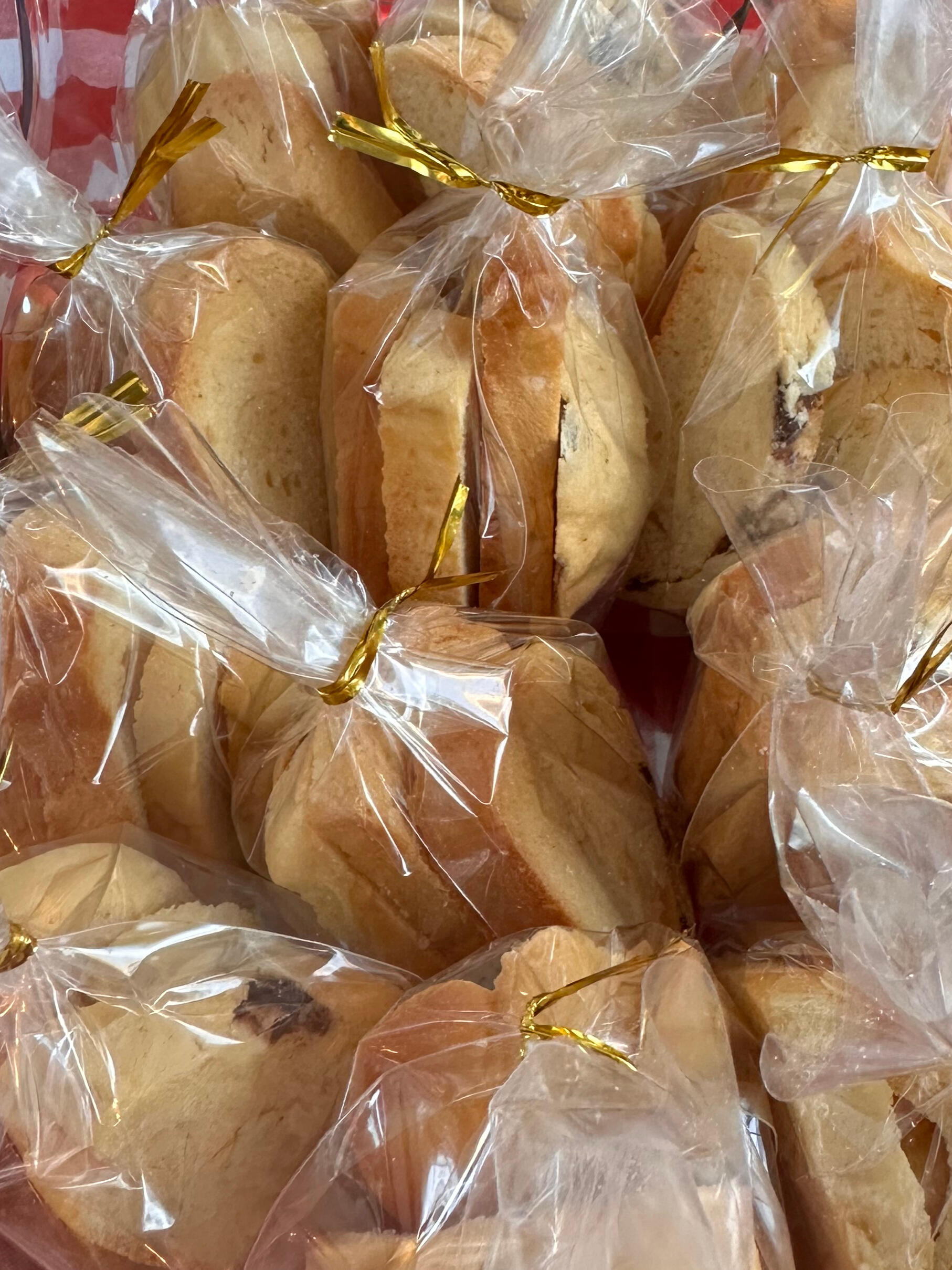 No one likes food going to waste. We slice, sprinkle with sugar and do a long re-bake of what's left after a day at the market. The result? Delicious dry biscuit, great with tea/chai or coffee.